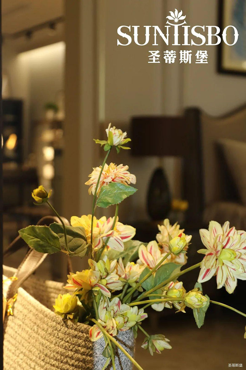 3.輕奢的配飾也需邀來似錦繁花相稱。色彩跳脫的植物更為亮眼,讓自然界的色彩與姿態應和空間之間的協調,傳遞空間與情感的共鳴。